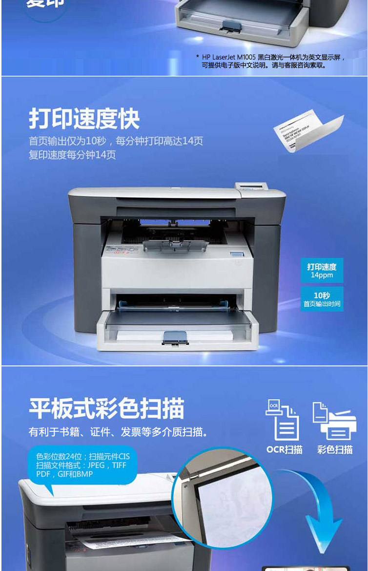 惠普(HP) M1005 黑白激光打印機(jī)多功能一體機(jī)